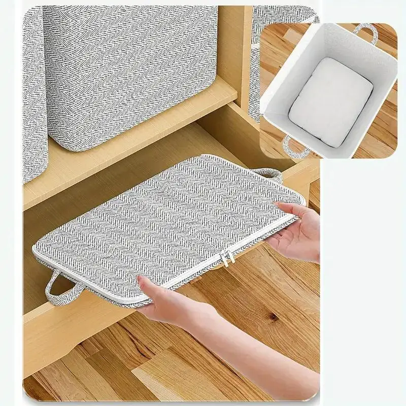 1pc Extra-Large Vintage Style Fabric Storage Bag with Zipper – Durable, Washable, Dustproof Organizer for Clothes, Quilts, Home & Car – Herringbone Pattern, Rectangular Shape, Multi-Purpose Folding Container, Underbed Storage | Rectangular Organizer | Washable Material
