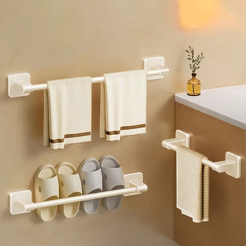1pc Single Rod Towel Rack, Wall-mounted Bath Towel Rack, Multiple Colors and Styles, Patch Installation, Essential for Kitchen and Bathroom white
