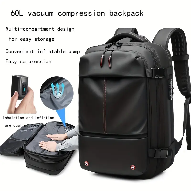 Airpack Backpack-Expandable Backpack Vacuum With Pump, Airback Bags With Anti Theft Lock, Vacuum Compression Bag For Travel, Business And College, Suitable For Men And Women