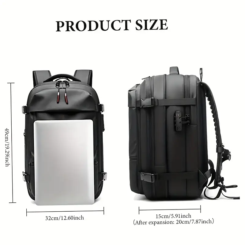 Expandable Storage: Designed to adapt to your needs, the backpack expands or compresses depending on the load, offering flexibility for everything from short commutes to extended travel.