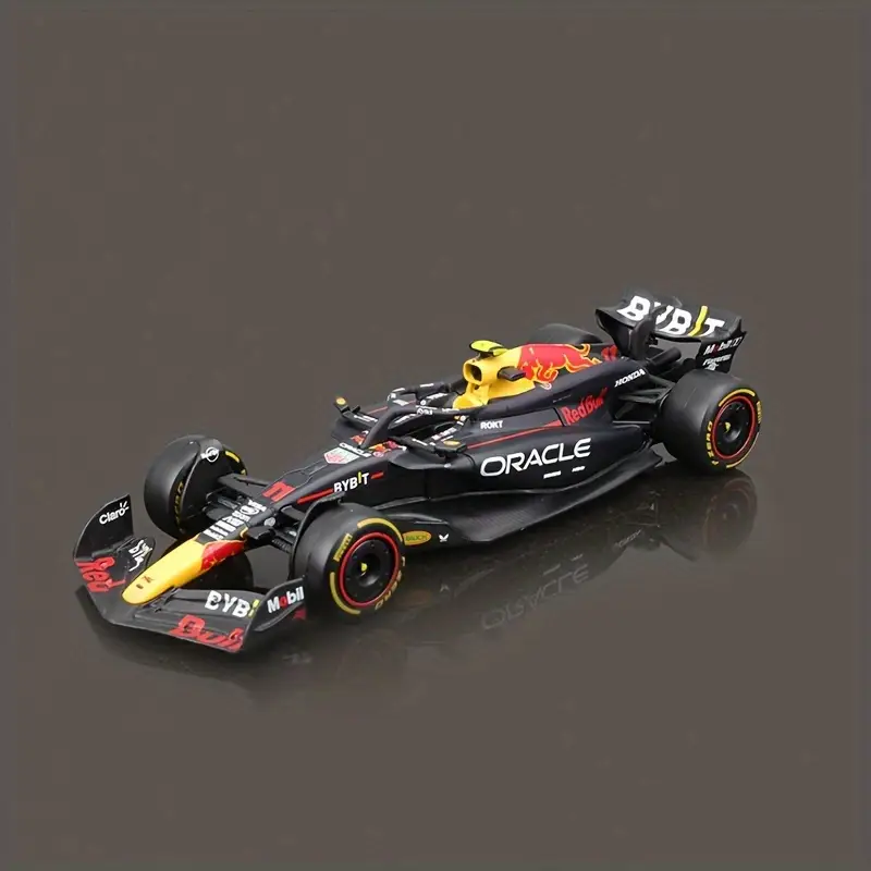 Celebrate the thrill of racing with this finely detailed Bburago 1:43 scale die-cast model of the Red Bull Racing RB20. Featuring driver numbers #1 and #11, this alloy collectible boasts a sleek black and golden aerodynamic design, making it a standout piece for racing fans and collectors alike.