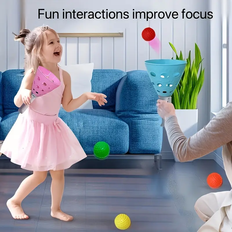🎯 Interactive Ball Set – Includes 2 launchers & 4 soft balls.