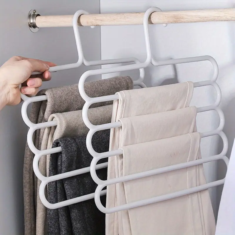 Maximize your closet space with this multi-layer plastic pants hanger, designed for efficient and organized storage of leggings, jeans, scarves, and more. Its sleek, casual style fits seamlessly into any wardrobe, bedroom, or closet, helping you keep your clothes neat and easily accessible.