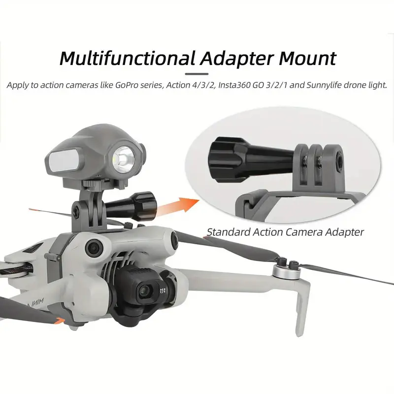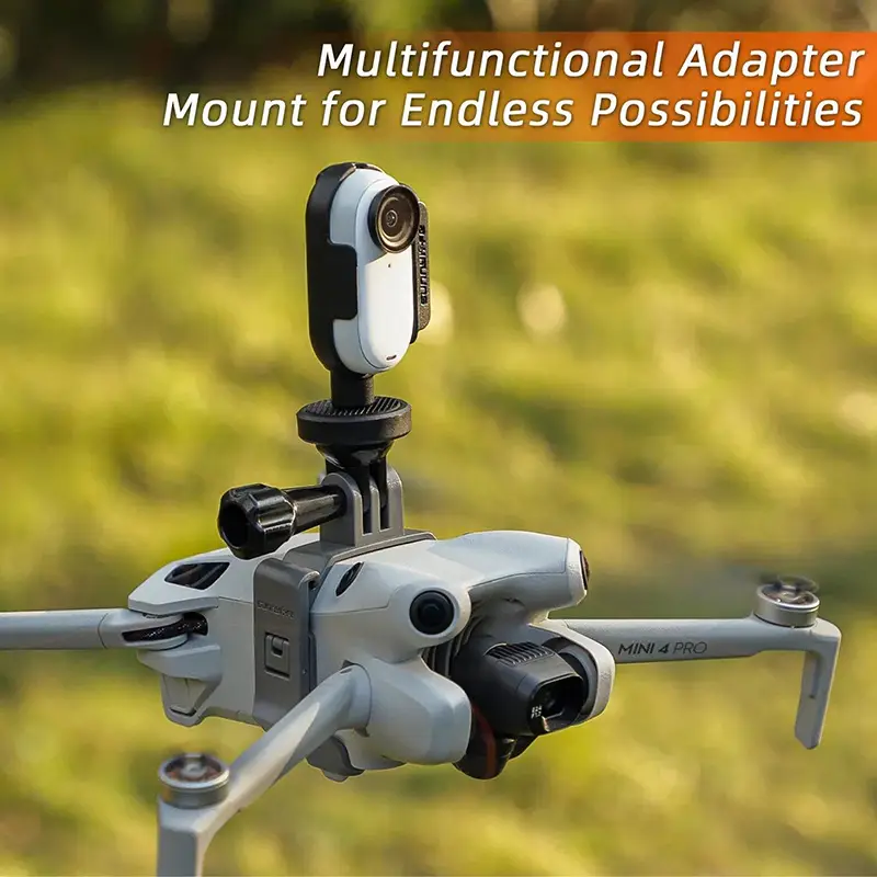 Expand your aerial filming capabilities with this Panorama Camera Adapter, specially designed for the DJI Mini 4 PRO drone. This upper connector mount securely attaches your GoPro, OSMO Action 4, Action 5, or other compatible cameras, allowing for high-angle and panoramic shots without compromising flight stability. A must-have accessory for drone enthusiasts and content creators.
