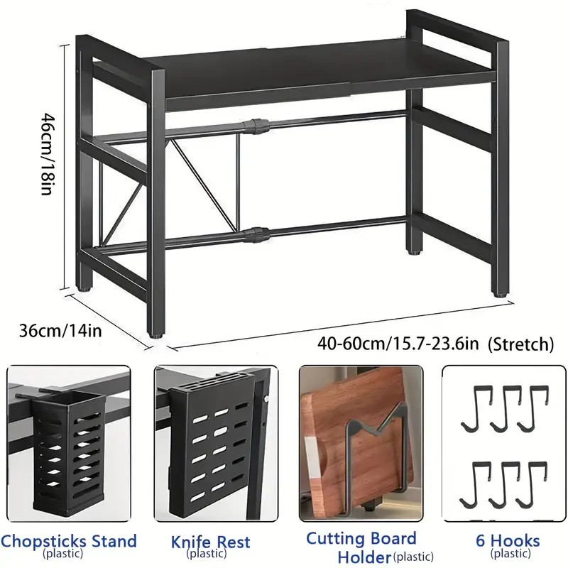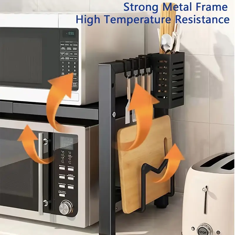 🔄 Retractable & Expandable Microwave Stand – Saves countertop space with adjustable sizing.